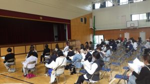 その後、体育館にてPTA総会を開催し、今年度の活動方針等についてご理解とご協力をいただきました。さらに、2・3年生につきましては、宿泊行事に関する説明会を行い、行事の目的や内容について共有させていただきました。